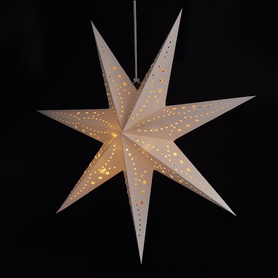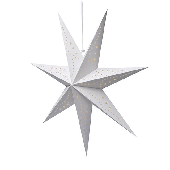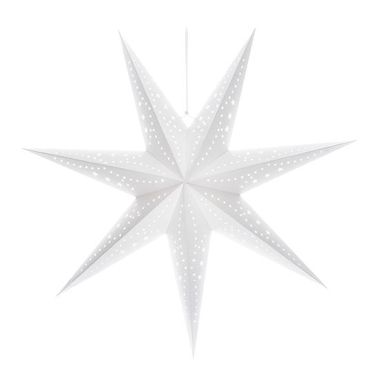 Vianočná hviezda s LED reťazou pre útulnú atmosféru Táto veľká vianočná hviezda s reťazou a 20 LED diódami v teplej bielej farbe je ideálnou voľbou na vytvorenie príjemnej sviatočnej atmosféry vo vašom domove. Vďaka svojmu elegantnému bielemu prevedeniu a rozmerom 60 x 19 x 60 cm sa stane výraznou dekoráciou v každom interiéri. Hviezda je vyrobená z kvalitného papiera a je určená na vnútorné použitie, čo zaručuje stupeň krytia IP20. Svetlo LED diód v teplom žltom odtieni navodí pocit pohody a pokoja počas celého adventu aj vianočných sviatkov.
