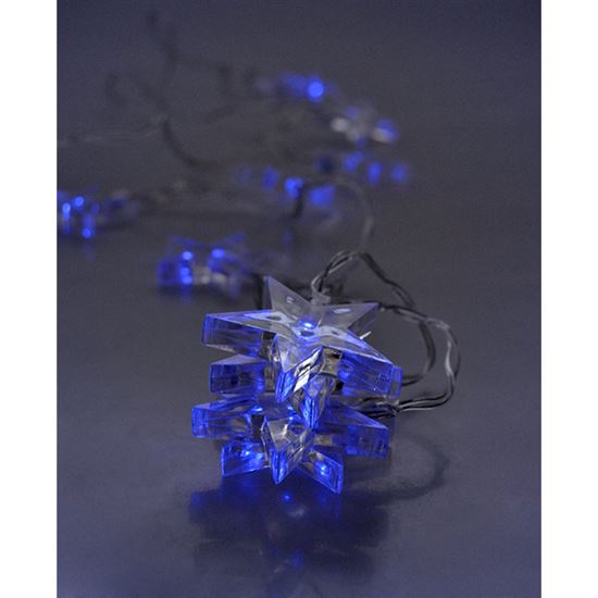 Svetelný reťaz s modrými LED hviezdami na dekoráciu interiéru Oživte svoj domov originálnym svetelným reťazom s motívom hviezd, ktorý je osadený desiatimi modrými LED diódami. Vďaka jemnému modrému svetlu a transparentnému káblu pôsobí dekorácia veľmi elegantne a nenápadne zapadne do každého interiéru. Svetelný reťaz je ideálny na ozdobenie okien, poličiek, detských izieb alebo ako štýlový doplnok na večierky a oslavy. Vzdialenosť medzi jednotlivými diódami je 15 cm, čo zabezpečuje rovnomerné rozloženie svetla po celej dĺžke osvetleného kábla 1,5 m.