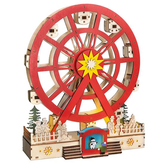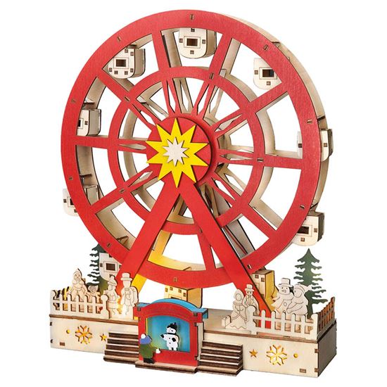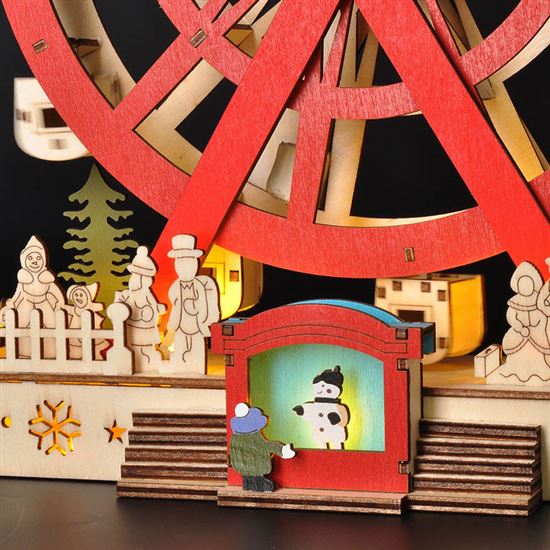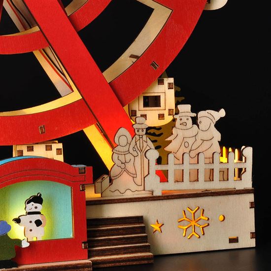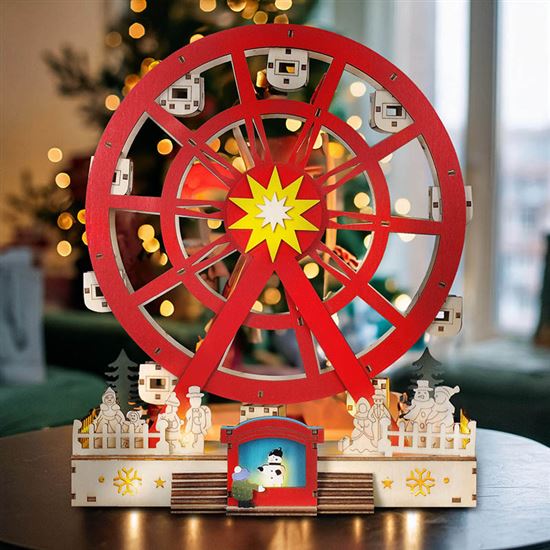 LED drevený vianočný kolotoč pre čarovnú atmosféru Tento LED drevený vianočný kolotoč s elektromotorom je ideálnou voľbou na vytvorenie slávnostnej nálady v každom interiéri. Po zapnutí sa kolotoč nielen rozsvieti príjemným teplým bielym svetlom zo siedmich LED diód, ale zároveň sa začne jemne otáčať, čím prináša do priestoru pohyb a živost. Vďaka kombinácii prírodného dreva a farebných detailov pôsobí dekorácia veľmi vkusne a originálne, či ju už umiestnite na stôl, policu alebo parapet. Kolotoč je navrhnutý na vnútorné použitie a jeho rozmery 25 x 9 x 30 cm z neho robia výrazný, ale zároveň elegantný doplnok vášho domova.
