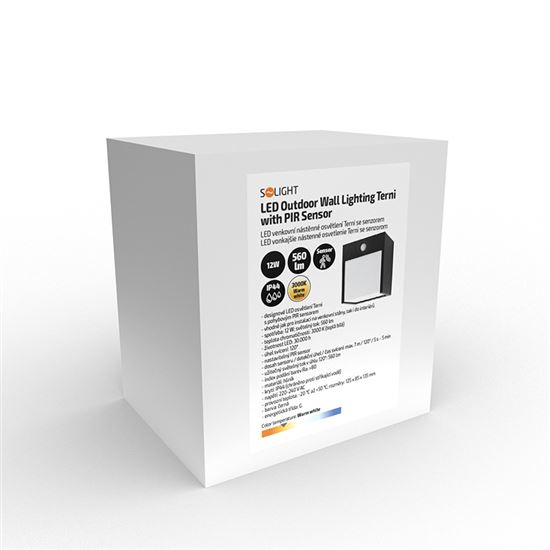 Pohodlie a bezpečie vďaka nastaviteľnému PIR senzoru Osvetlenie Terni je vybavené praktickým pohybovým PIR senzorom, ktorý automaticky reaguje na pohyb v dosahu až 7 metrov a v detekčnom uhle 120°. Doba svietenia je nastaviteľná v rozmedzí 5 sekúnd až 5 minút, čo umožňuje prispôsobiť svetlo vašim potrebám. S energetickou triedou G, spotrebou 12 W a životnosťou LED až 30 000 hodín je Terni nielen úsporným, ale aj spoľahlivým riešením pre každodenné použitie. Vysoký index podania farieb Ra >80 zaručuje verné zobrazenie farieb, čo oceníte ako pri osvetlení vstupných priestorov, tak aj v interiéri.