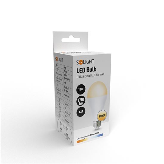 LED žiarovka Premium pre efektívne a príjemné osvetlenie LED žiarovka Premium s klasickým tvarom je ideálnou voľbou pre všetkých, ktorí hľadajú úsporné a zároveň výkonné osvetlenie do domácnosti aj kancelárie. Vďaka spotrebe len 18 W poskytuje svetelný tok 1710 lm, čo zodpovedá tradičnej 110 W žiarovke, a zabezpečí tak dostatok svetla aj vo väčších miestnostiach. Teplota chromatickosti 3000 K vytvára príjemné teplé biele svetlo, ktoré navodzuje útulnú atmosféru a je šetrné k očiam. Žiarovka sa rozsvieti okamžite bez zahrievania (<0,1 s) a vďaka širokému uhlu svietenia 270° rovnomerne osvetlí celý priestor.