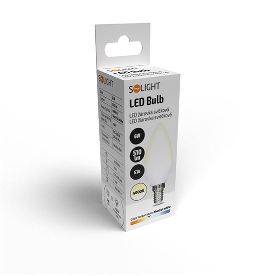 LED žiarovka sviečková pre úsporné a efektívne osvetlenie LED žiarovka sviečková s päticou E14 je ideálnou voľbou pre každého, kto hľadá moderné a úsporné riešenie osvetlenia do domácnosti aj kancelárie. Vďaka spotrebe len 6 W poskytuje svetelný tok 510 lm, čo zodpovedá klasickej 42 W žiarovke, a pritom výrazne šetrí energiu. Neutrálne biele svetlo s teplotou chromatickosti 4000 K vytvára príjemnú atmosféru vhodnú na každodenné činnosti, čítanie aj prácu. Okamžitý štart bez zahrievania (<0,1 s) a široký uhol svietenia 160° zabezpečujú rovnomerné osvetlenie priestoru bez zbytočných tieňov.