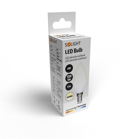 LED žiarovka sviečková pre úsporné a efektívne osvetlenie LED žiarovka sviečková s päticou E14 je ideálnou voľbou pre tých, ktorí hľadajú moderné a úsporné riešenie osvetlenia do lustrov, lampičiek alebo dekoratívnych svietidiel. Vďaka spotrebe iba 8 W poskytuje svetelný tok 720 lm, čo zodpovedá klasickej 55 W žiarovke, a pritom výrazne šetrí energiu. Neutrálne biele svetlo s teplotou chromatickosti 4000 K vytvára príjemnú atmosféru vhodnú do obývacích izieb, kuchýň aj pracovní. Okamžitý štart bez zahrievania (<0,1 s) a široký uhol svietenia 160° zabezpečujú rovnomerné osvetlenie priestoru bez zbytočných tieňov.