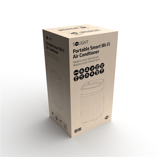 Mobilná inteligentná klimatizácia 12000 BTUTáto inteligentná mobilná klimatizácia s výkonom 12 000 BTU/h (3,5 kW) poskytuje účinné chladenie, odvlhčovanie a vetranie v miestnostiach s rozlohou do 45 m2 (95 m3). Vďaka pripojeniu WiFi možno jednotku ovládať pomocou mobilnej aplikácie Smart Life/Tuya alebo diaľkového ovládania. Ponúka tri rýchlosti ventilátora s cirkuláciou vzduchu 360/300/270 m3/h, nastavenie teploty 17-30 °C, časovač, termostat, nočný režim a digitálny displej. Hlučnosť 51/53 dB, odvlhčovací výkon 39 l/deň, objem nádoby na kondenzát 0,8 l, chladiaci výkon 2,64 EER a chladivo R290/202 g zabezpečujú vysokú účinnosť a ekologickú prevádzku. Pojazdné kolieska umožňujú jednoduché premiestňovanie. Súčasťou dodávky je okenné tesnenie s 1,5 m hadicou a adaptérmi. Napájanie 230 V / 50 Hz, dĺžka kábla 180 cm, rozmery 420 x 380 x 720 mm, hmotnosť 31,5 kg, dizajn biely. Moderná technológia, vysoký výkon a inteligentné ovládanie z neho robia ideálnu voľbu na efektívne a pohodlné chladenie domácností a kancelárií.