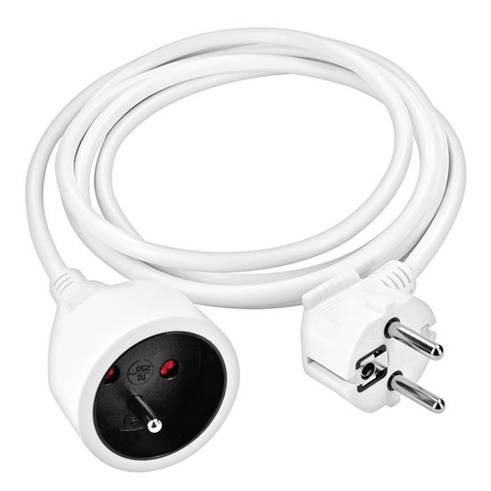 Predlžovací prívod na každodenné použitie Kompaktný biely predlžovací kábel s dĺžkou 1,5 metra a jednou zásuvkou je ideálny na jednoduché predĺženie elektrickej energie v domácnosti, kancelárii alebo dielni. Vhodný na pripojenie samostatného zariadenia mimo dosahu pevnej zásuvky.