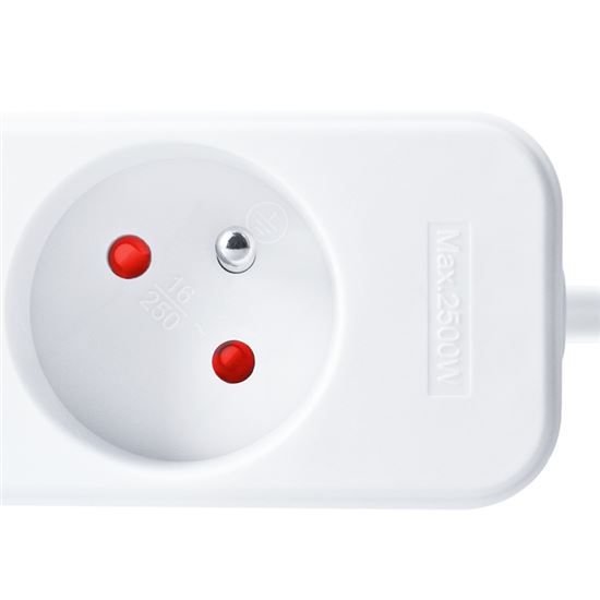 Bezpečný a spoľahlivý výkon Prívod je navrhnutý pre maximálnu záťaž 2300 W, tzn. prúdové zaťaženie 10 A pri napätí v sieti 230 V~. Zaisťuje stabilný prenos energie pre bežné elektrospotrebiče. Zásuvky sú vybavené detskými poistkami pre maximálnu bezpečnosť.