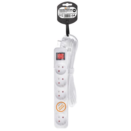 Predlžovací prívod na každodenné použitie Praktický biely predlžovací kábel s dĺžkou 3 metry a piatimi zásuvkami umožní priviesť elektrickú energiu tam, kde nie je k dispozícii pevná zásuvka. Podsvietený vypínač umožňuje pohodlné ovládanie všetkých pripojených zariadení. Ideálne pre domáce aj kancelárske využitie.