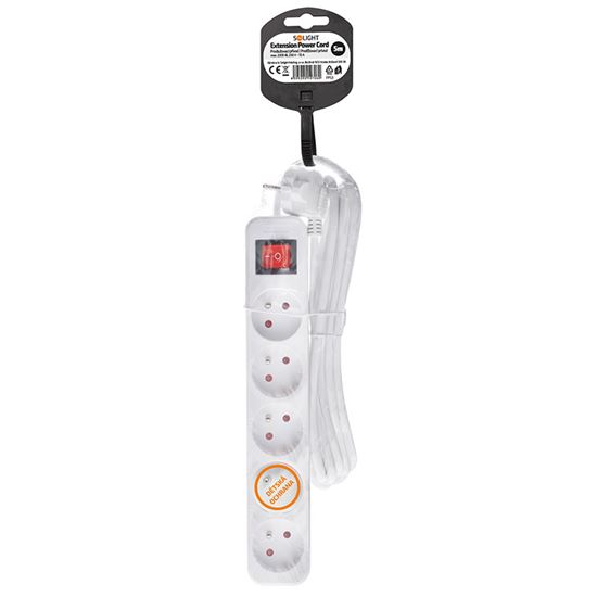Predlžovací prívod na každodenné použitie Praktický biely predlžovací kábel s dĺžkou 5 metrov a piatimi zásuvkami umožní priviesť elektrickú energiu tam, kde nie je k dispozícii pevná zásuvka. Podsvietený vypínač umožňuje pohodlné ovládanie všetkých pripojených zariadení. Ideálne pre domáce aj kancelárske využitie.