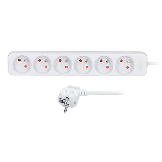 Predlžovací prívod na každodenné použitie Praktický biely predlžovací kábel s dĺžkou 4 metre a šiestimi zásuvkami umožní priviesť elektrickú energiu tam, kde nie je k dispozícii pevná zásuvka. Ideálne pre domáce aj kancelárske využitie.