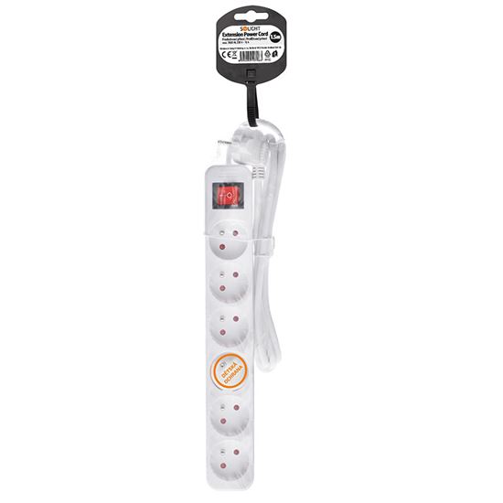 Predlžovací prívod na každodenné použitie Praktický biely predlžovací kábel s dĺžkou 1,5 metra a šiestimi zásuvkami umožní priviesť elektrickú energiu tam, kde nie je k dispozícii pevná zásuvka. Podsvietený vypínač umožňuje pohodlné ovládanie všetkých pripojených zariadení. Ideálne pre domáce aj kancelárske využitie.