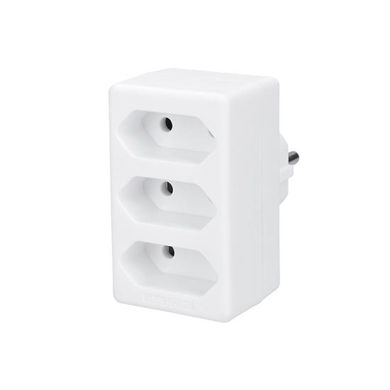 Táto jednoduchá rozbočka slúži na zapojenie troch neuzemnených spotrebičov s prívodnými šnúrami s plochou vidlicou. Lampička, set-top-box, router, apod.