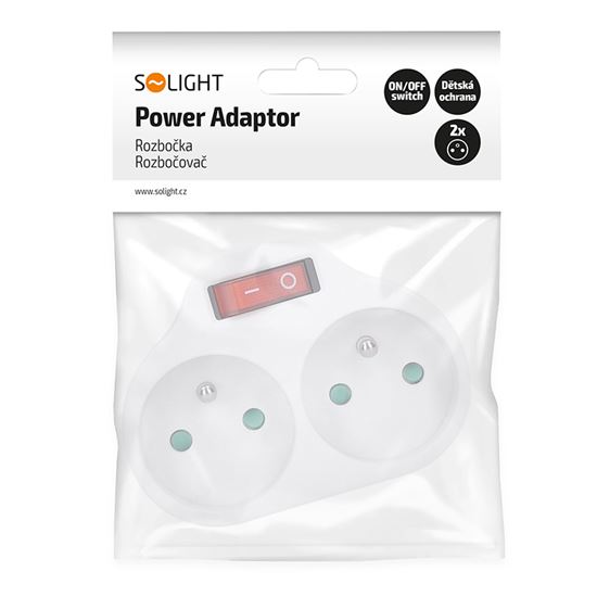 Solight rozbočovač, 2x 10 A, biely, vypínač | SOLIGHT