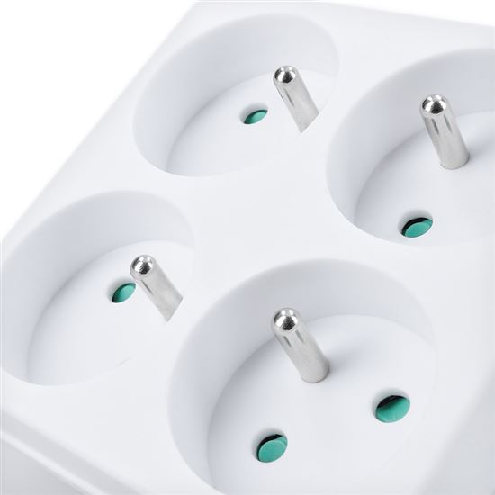 Štyri zásuvky v minimalistickom tele zvládnu celkovú záťaž až 3680 W a umožnia pripojiť bežné spotrebiče v obývačke, spálni alebo pracovni. Televízia, set-top-box, router, apod. Vďaka natočeniu horných zásuviek je možné ľahko manipulovať s prívodnými šnúrami v spodných zásuvkách. Všetky káble smerujú smerom dole a netrčia rôzne v priestore. Zásuvky sú navyše vybavené detskými poistkami, ktoré zaistia bezpečnú prevádzku aj v domácnostiach s deťmi. Vďaka kompaktnému prevedeniu nezaberie zbytočne miesto.