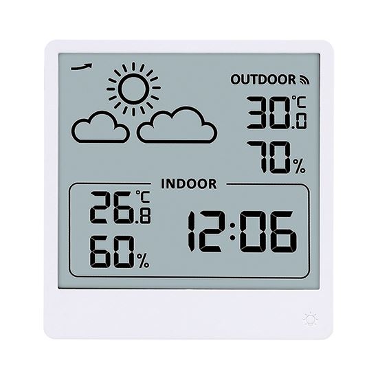 TermometerMeria vnútornú teplotu od -9,9 °C do +50 °C a vonkajšiu teplotu od -40 °C do +70 °C. Meranie vlhkosti (20 % až 95 %) pre vnútorné a vonkajšie prostredie. Ukladanie maximálnych a minimálnych hodnôt teploty a vlhkosti, zobrazenie trendu zmeny tlaku a predpovede počasia. Možnosť výberu jednotiek teploty °C/°F. Napájanie: hlavná jednotka a snímač 2× AAA batérie (nie sú súčasťou dodávky). farba: biela.