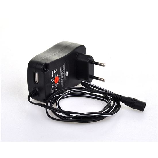 Sieťový adaptérTento stabilizovaný napájací adaptér ponúka široký rozsah výstupného napätia (3-12 V) a prúd až do 2 500 mA, čím poskytuje efektívne napájanie rôznym zariadeniam. Súprava vymeniteľných konektorov DC a výstup USB 5V/1A poskytujú širokú kompatibilitu. Adaptér je energeticky účinný (spotreba energie v pohotovostnom režime <0,5 W) a je vybavený feritovým filtrom na elimináciu rušenia. Ideálny do domácností a kancelárií.