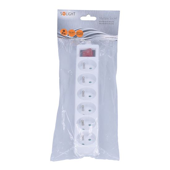 Solight viacnásobná zásuvka, 6 zásuviek, vypínač | SOLIGHT