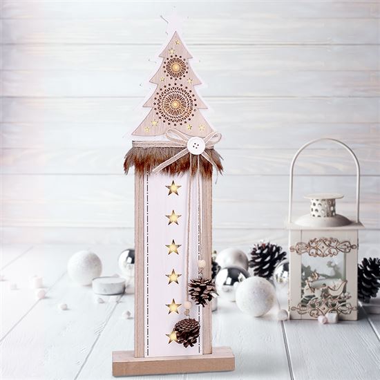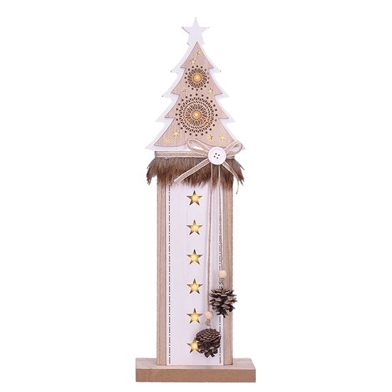 Vianočný LED drevený stromček pre útulnú atmosféru Táto štýlová vianočná dekorácia v podobe dreveného stromčeka prináša do vášho domova čaro sviatočných chvíľ. Stromček je vyrobený z kombinácie bielej farby a prírodného dreva, čo mu dodáva moderný aj tradičný vzhľad zároveň. Vďaka desiatim LED diódam s teplým bielym svetlom vytvorí príjemné žlté osvetlenie, ktoré navodí pohodovú atmosféru nielen počas Vianoc. Dekorácia je ideálna na umiestnenie na stôl, poličku alebo parapet, kde sa stane neprehliadnuteľným doplnkom vášho interiéru.