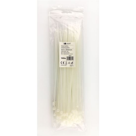Solight viazacie nylonové pásky, 3,6 x 250mm, natural, 100ks | SOLIGHT