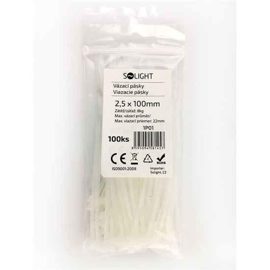 Solight viazacie nylonové pásky, farba natural, 100ks, 2,5 x 100mm | SOLIGHT