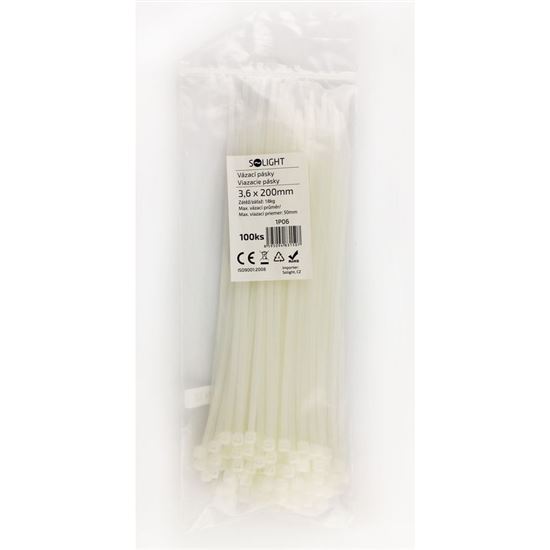 Solight viazacie nylonové pásky, farba natural, 100ks, 3,6 x 200mm | SOLIGHT