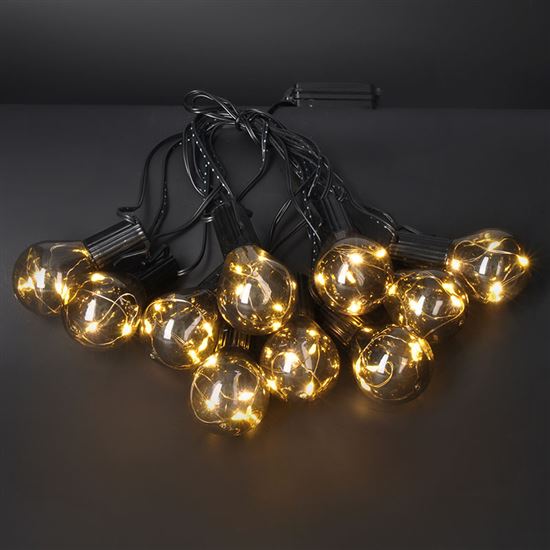Vonkajší dekoratívny reťaz s LED žiarovkami je ideálnou voľbou na vytvorenie príjemnej atmosféry na vašej záhrade, terase alebo balkóne. Reťaz je vybavený 10 žiarovkami, ktoré spolu obsahujú 50 LED diód a svietia v teplej bielej (žltej) farbe, ktorá navodzuje útulné prostredie pri večernom posedení. Vďaka dĺžke osvetlenej časti 2,7 m a prívodnému káblu s dĺžkou 0,5 m jednoducho reťaz umiestnite presne tam, kde potrebujete. Plastové prevedenie zaisťuje odolnosť voči poveternostným vplyvom a stupeň krytia IP44 umožňuje bezpečné vonkajšie použitie.