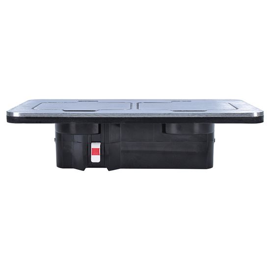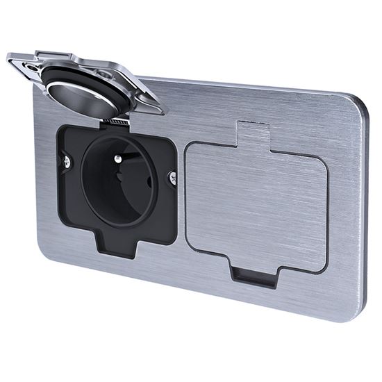 Vrchný kryt zásuvky je vyrobený z odolnej zinkovej zliatiny, ktorá zaisťuje pevnosť a zároveň ochranu proti korózii. Na povrchu nie sú viditeľné žiadne skrutky – montážne otvory zostávajú skryté pod každým viečkom. Vďaka tomu pôsobí zásuvka elegantne a profesionálne a zároveň sa ľahko čistí.