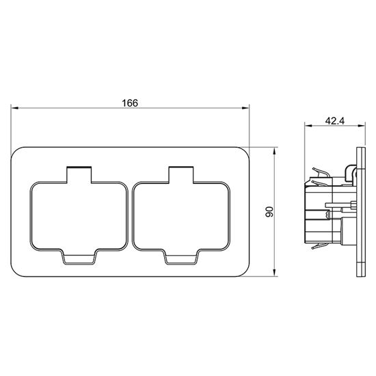 - zásuvka dvojnásobná uzemnená 2x (2P+E), obdĺžnikový tvar
