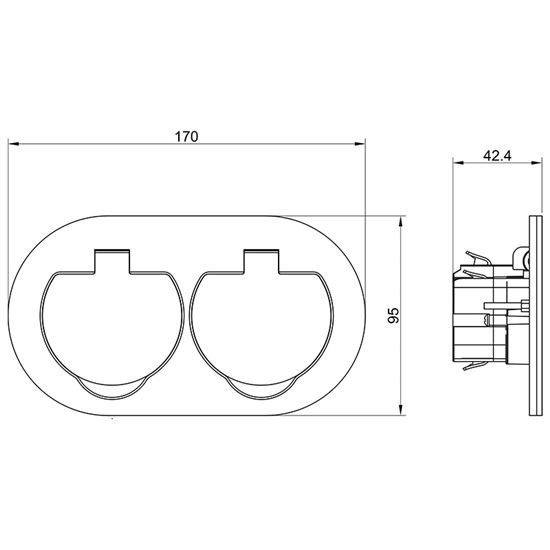 - zásuvka dvojnásobná uzemnená 2x (2P+E), okrúhly tvar