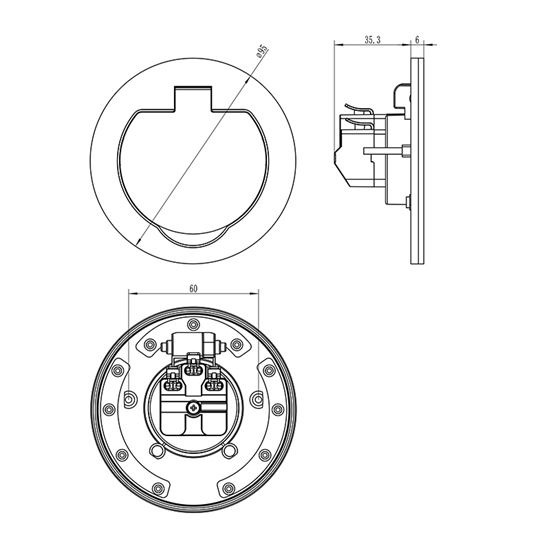 Vrchný kryt zásuvky je vyrobený z odolnej zinkovej zliatiny, ktorá zaisťuje pevnosť a zároveň ochranu proti korózii. Na povrchu nie sú viditeľné žiadne skrutky – montážne otvory zostávajú skryté pod viečkom. Vďaka tomu pôsobí zásuvka elegantne a profesionálne a zároveň sa ľahko čistí.