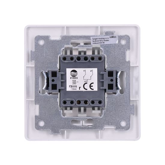 Spoľahlivé a bezpečné ovládanie Sériový vypínač (spínač), radenie č. 5, slúži na ovládanie dvoch svetiel alebo dvoch sériovo zapojených radov svetiel z jedného miesta. Ideálne pre dvojokruhové lustre s viacerými žiarovkami alebo kombinácia centrálneho a doplnkového osvetlenia. Napr. v kúpeľni hlavné svetlo a osvetlenie zrkadla. Je určený na montáž do inštalačnej krabice KU 68 a pracuje pri menovitom napätí max. 250 V~ a prúde 10 A. Bezskrutkové uchytenie vodičov na rýchlosvorky výrazne uľahčuje a urýchľuje montáž. Kovové telo strojčeka a kryt z odolného plastu v bielej farbe sa ľahko kombinuje s akýmkoľvek zariaďovacím štýlom.