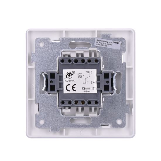Spoľahlivé a bezpečné ovládanie Striedavý vypínač (spínač), radenie č. 6, je určený na spínanie jedného svetelného okruhu z dvoch rôznych miest, napríklad na chodbách, schodiskách alebo vo väčších miestnostiach. Je určený na montáž do inštalačnej krabice KU 68 a pracuje pri menovitom napätí max. 250 V~ a prúdu 10 A. Bezskrutkové uchytenie vodičov na rýchlosvorky výrazne uľahčuje a urýchľuje montáž. Kovové telo strojčeka a kryt z odolného plastu v bielej farbe sa ľahko kombinuje s akýmkoľvek zariaďovacím štýlom.