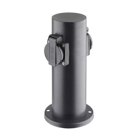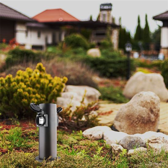 Dve zásuvky s detskými poistkami sú chránené samouzatvárateľnými krytkami, ktoré bránia vniknutiu vlhkosti a nečistôt. Vďaka krytiu IP44 je stĺpik vhodný aj na použitie za dažďa alebo vo vlhšom prostredí. Zásuvky zvládnu záťaž až 3680 W (16 A pri 230V~), čo je ideálne pre vonkajšie osvetlenie, záhradnú techniku ​​aj bežné spotrebiče. Vhodný pre domy, pergoly aj firemné areály.
