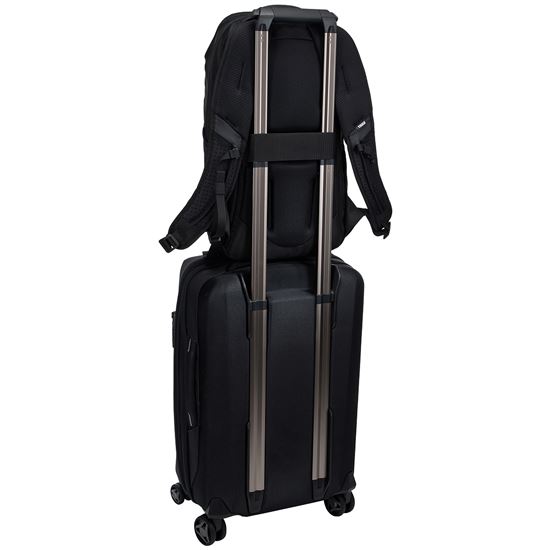 • Zadný popruh umožňuje pripevniť batoh k batožine na kolieskach pre pohodlnejšie cestovanie.