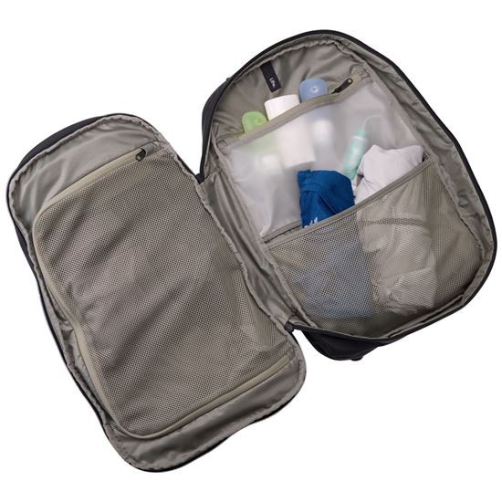 • Batoh sa dá úplne rozopnúť, takže je možné do neho vkladať veci z obidvoch strán. Má priehradku na objemné predmety so sieťovaným panelom, ktorý sa zapína na zips a udržuje veci utriedené.