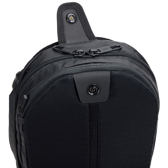 • Obsah hlavného oddielu je dokonale zabezpečený vďaka skrytým zipsom, otváraniu smerom dozadu a chlopni, ktorá obopína zips a tým zvyšuje zabezpečenie.